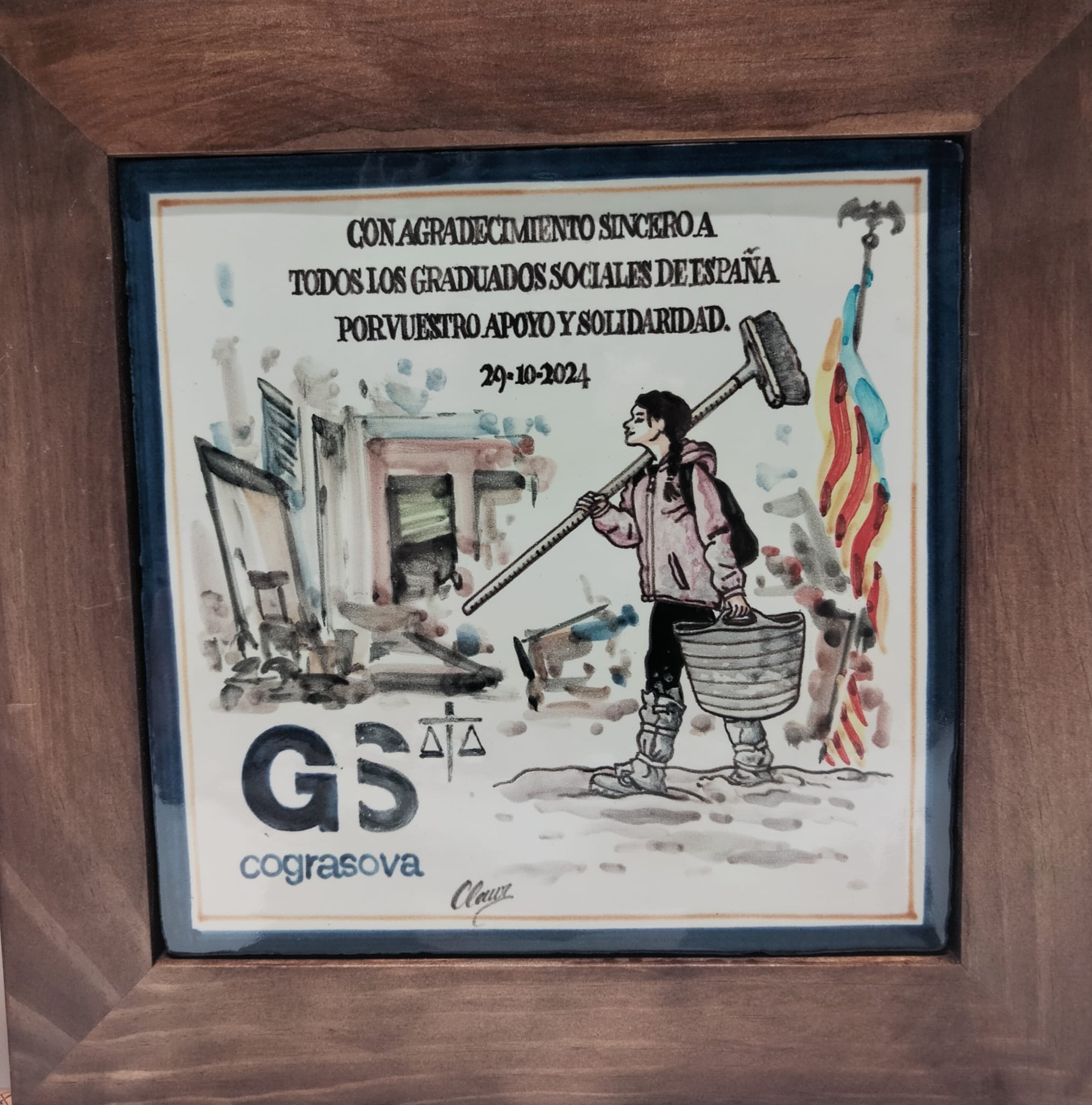 Nuestro Colegio entregó un pequeño azulejo conmemorativo por la ayuda prestada por el Consejo General y resto de Colegios de Graduados Sociales de España en la pasada Dana sufrida en Valencia el 29 de octubre de 2024.