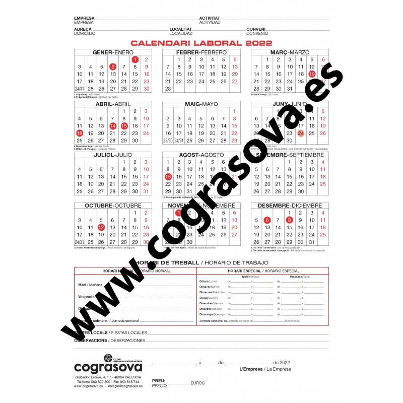 Calendario Laboral 2026 en formato A4.